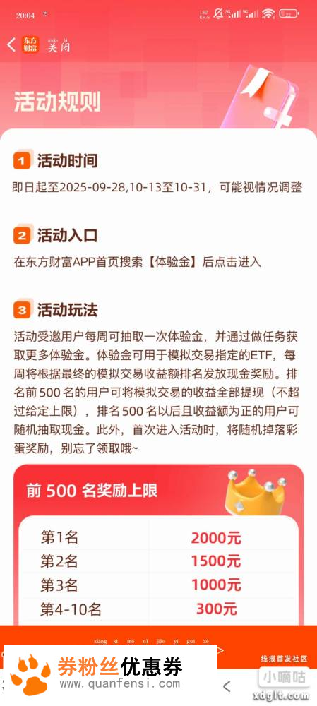 东方财富体验金又又又复活了,速度去看,周一开始,先去领体验金